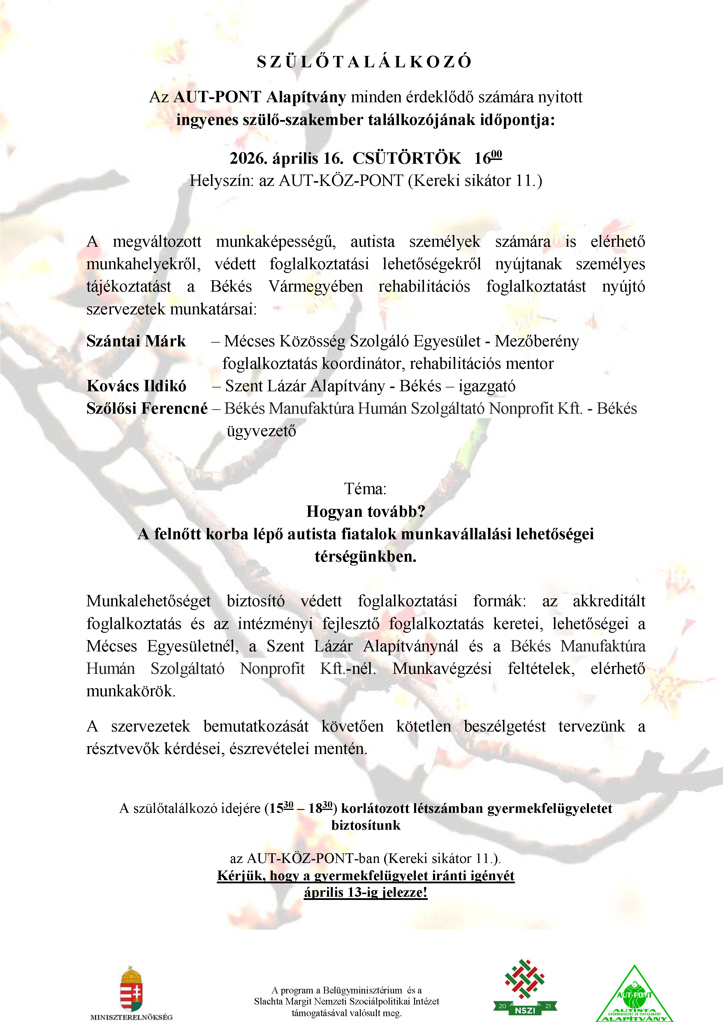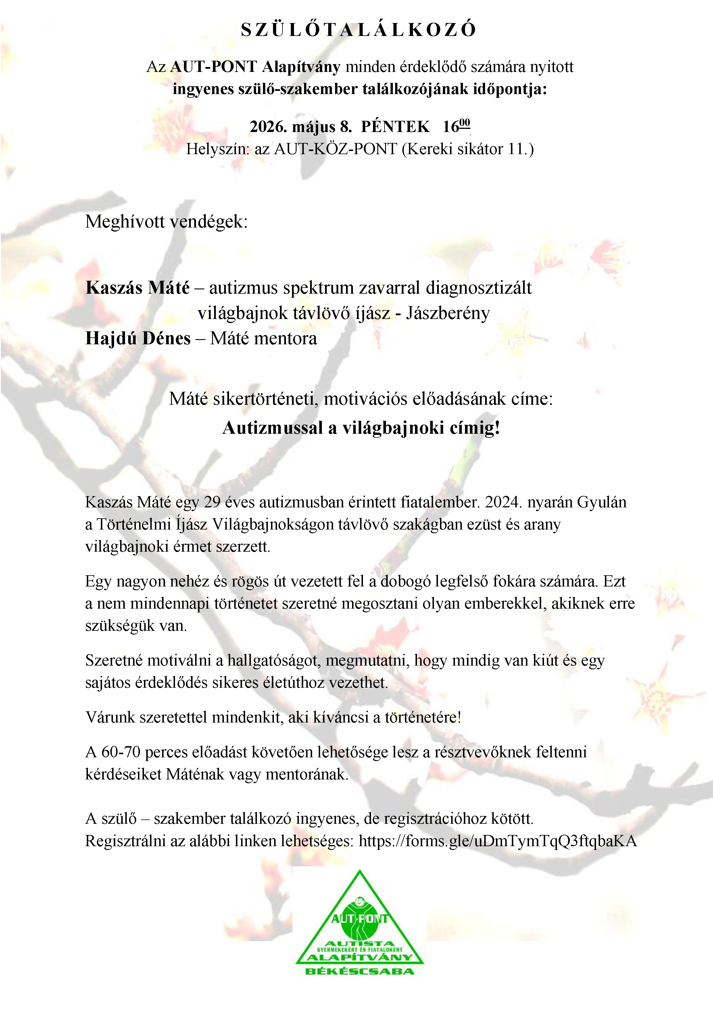 A szülő – szakember találkozó ingyenes, de regisztrációhoz kötött.
